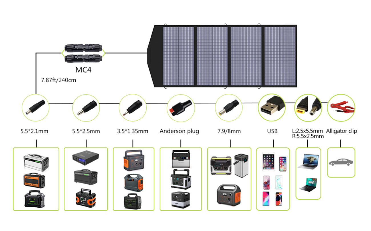 Equipped with the Solar connector and DC contrller, ALLPOWERS 140W solar panel is highly compatible with most solar generators on the market.