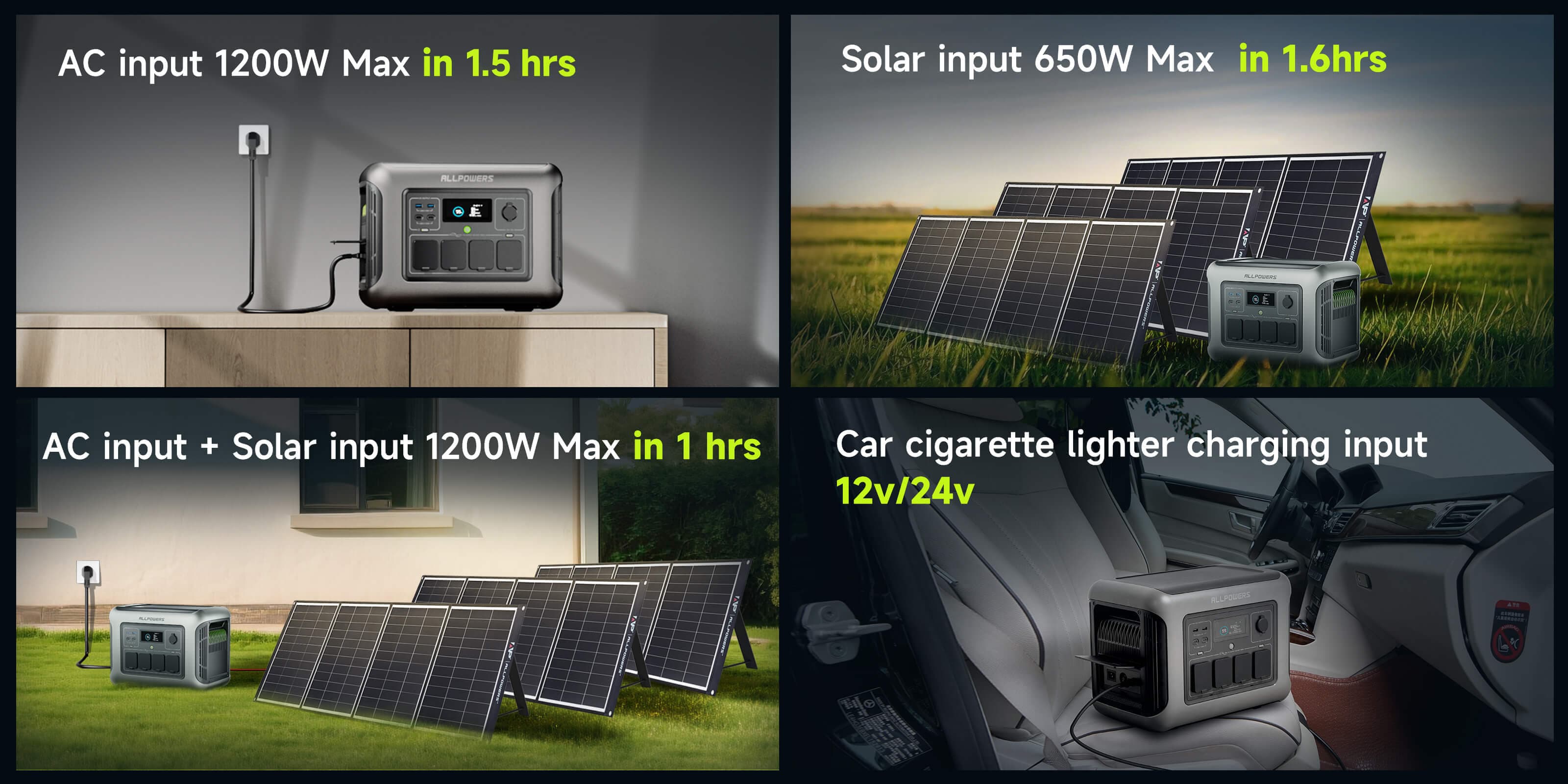 - Maximum 1200W AC input 0-100% within 1.5 hours