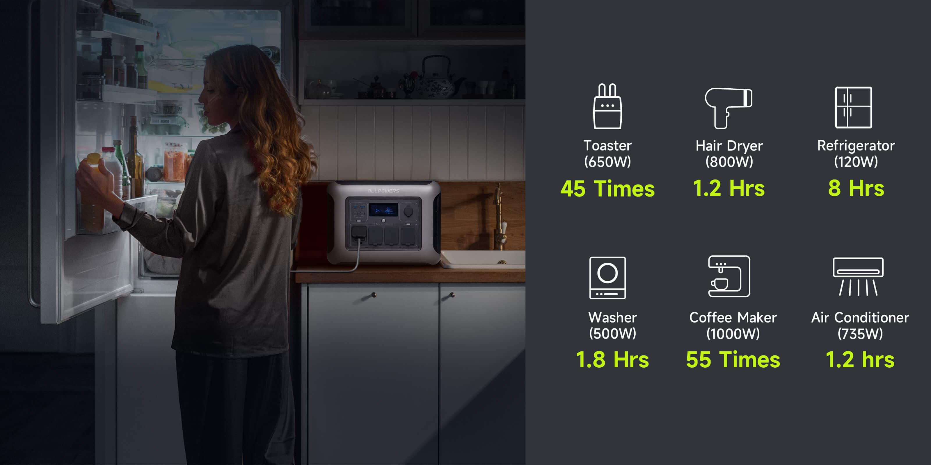 The R1500 LITE has a remarkable 1056Wh capacity and 1600W output, making it capable of running 99% of home appliances. You may use it to power the majority of tools and appliances for outdoor activities and domestic crises, giving you confidence in any situation.