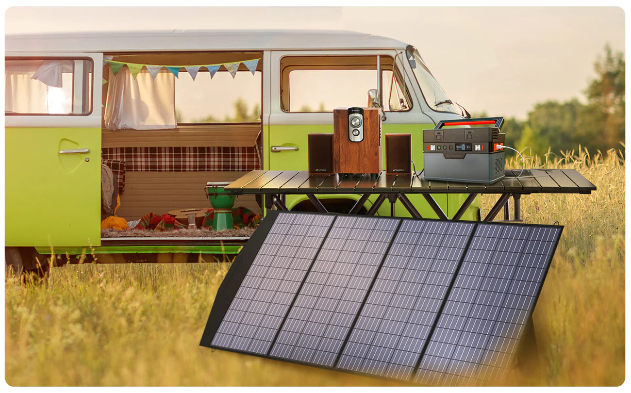 ALLPOWERS 200W foldable solar panel is compatible with most portable power station on the market. The portable solar panel kit includes different sizes of connectors for portable solar generator( Solar Connector to Anderson / Solar Connector to DC ).