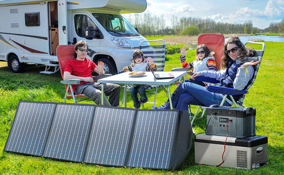 ALLPOWERS 200W portable solar panel up to 22% efficiency and 1/3 lighter than the same power of solar silicon. 200W Output can provide more power to your devices and charge it faster.