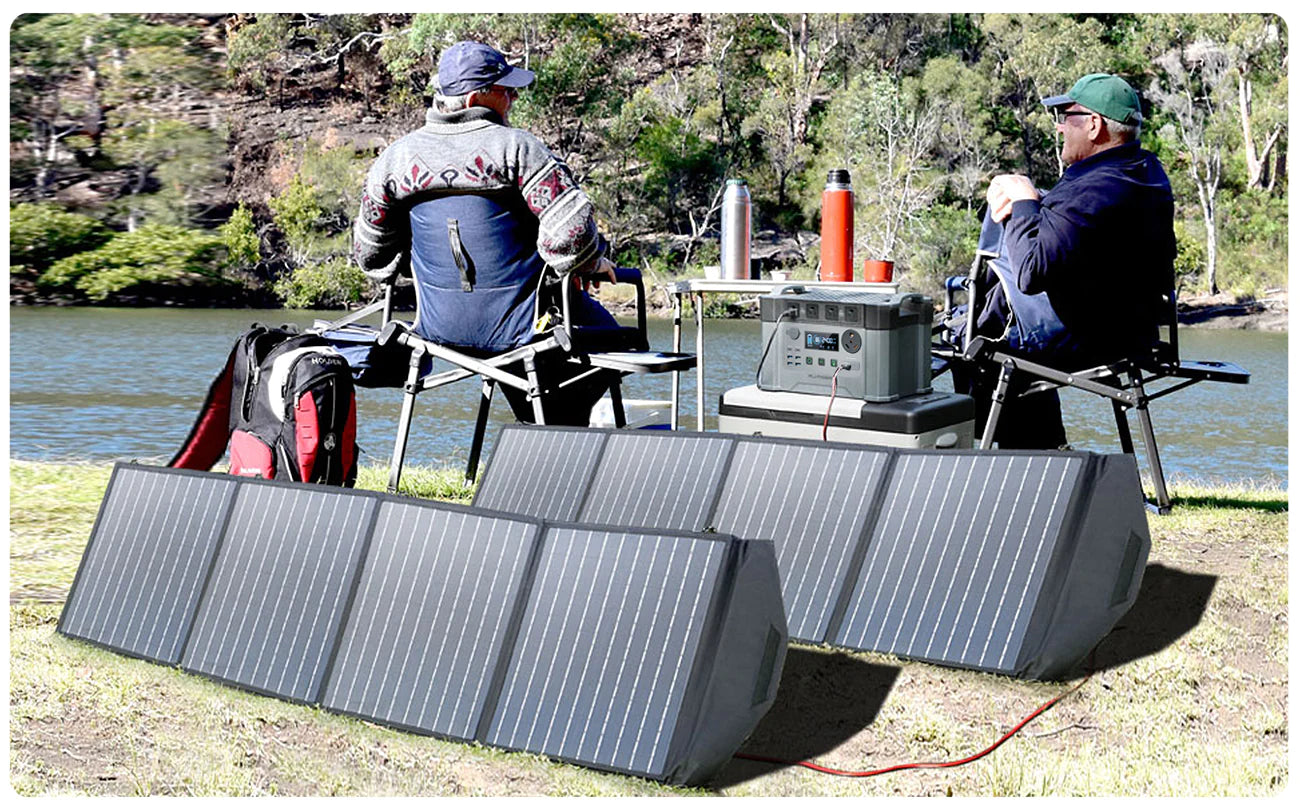 Folded size only 25.6x20.3x2.4inch,13.9lb, portable solar panel 200W is great for traveling the without electricity and won't take up much room in your bag. ALLPOWERS foldable solar charger features Solar Connector output(25A max), providing endless power for power station in camping, outdoor, garden, motorhome, and caravan under the sun.