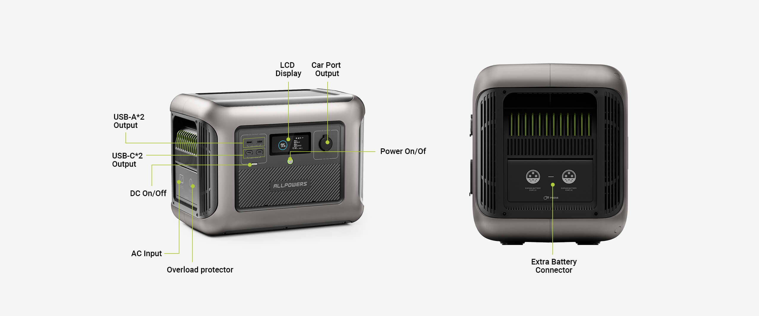 As the companion battery pack to R1500 , B1000 has a capacity of 1152Wh,Compatible with R1500 for a maximum of 4,608Wh capacity (1*R1500+3*B1000) .enough to get you through a severe power outage.