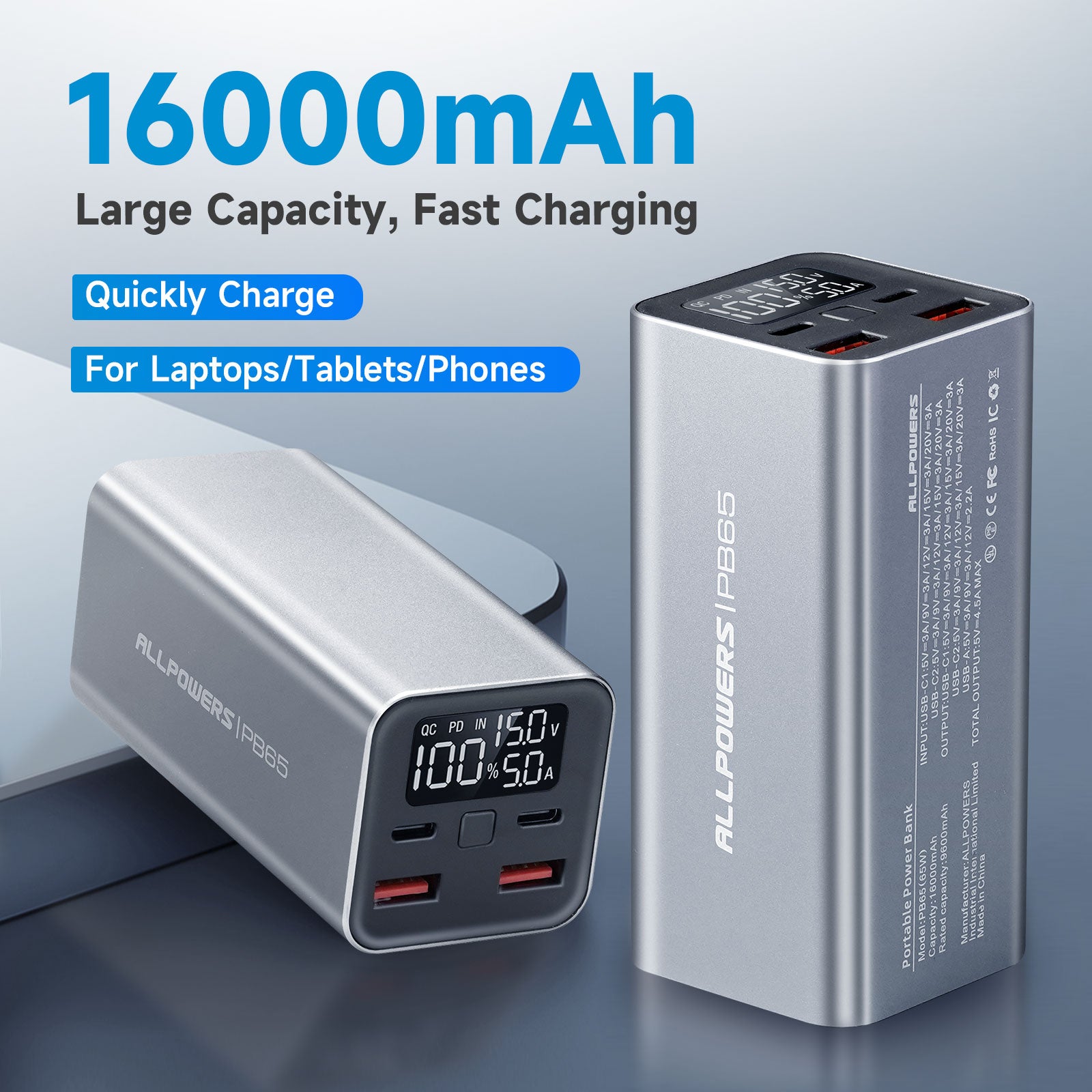 ALLPOWERS PB65 65w portable power bank can charge your mobie phone more than 3 times. meets the battery life needs of your multiple electronic products.