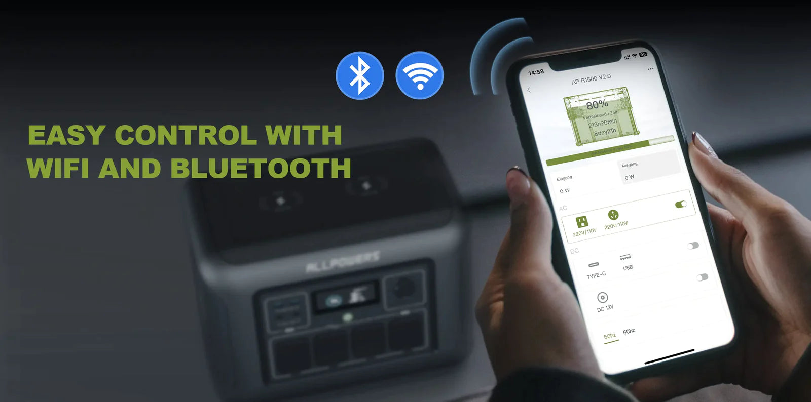 Easy to realize by connecting with ALLPOWERS APP via WIFI power monitoring/function setting/remote control/system upgrade.