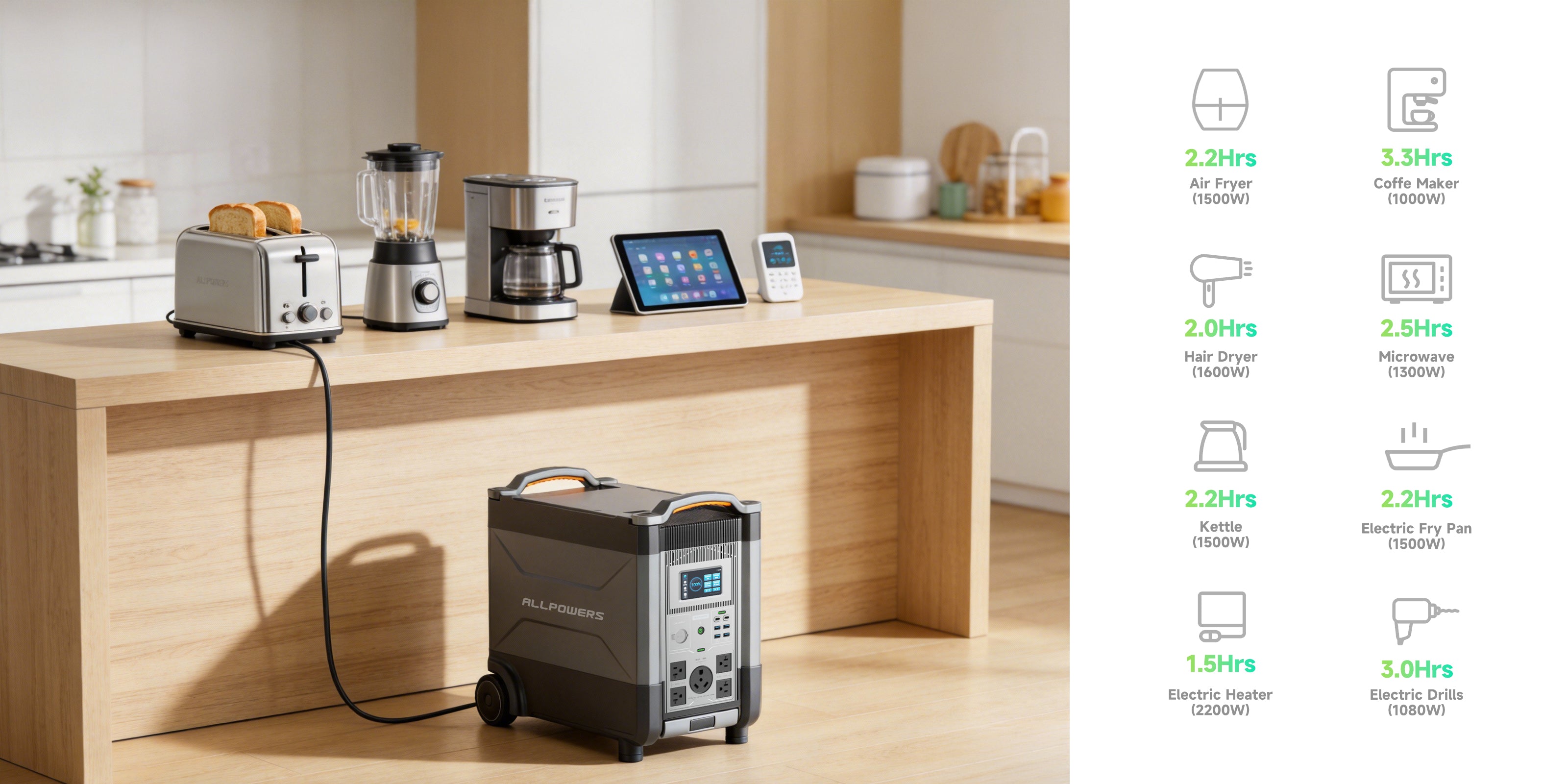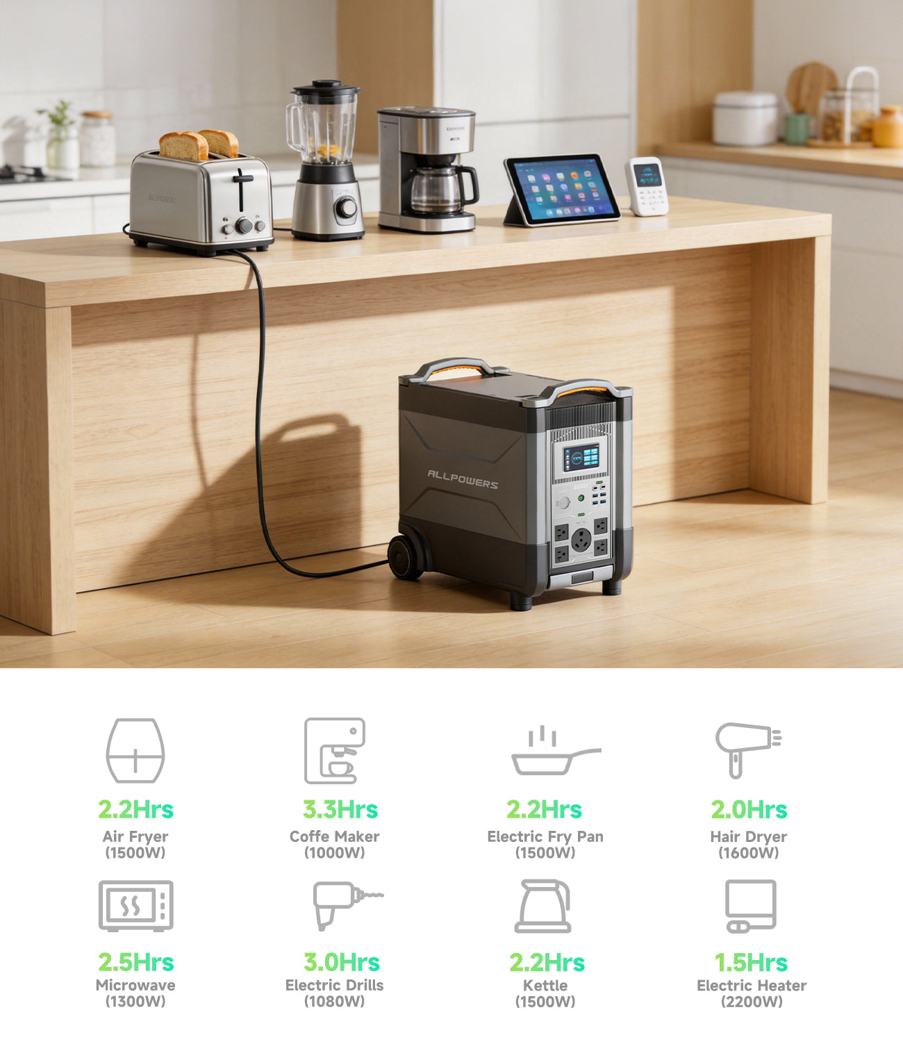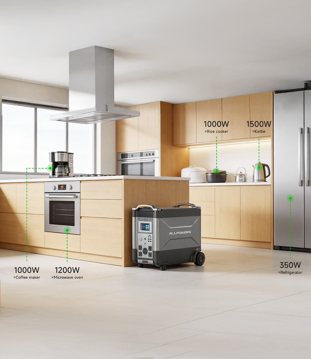 Induction cooktops, electric ovens, washing machines, dishwashers, space heaters, power tools, medical devices, routers, and lighting systems—ideal for daily home use, power outages, and high-power applications.