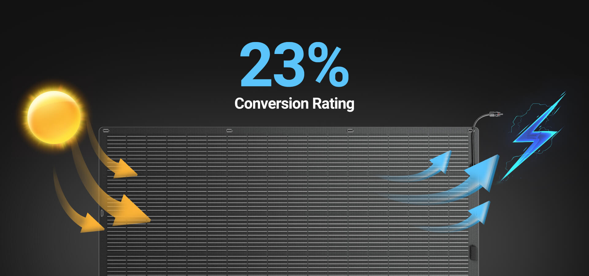 ALLPOWERS SF400 Flexible solar panel are made in Monocrystalline solar cells, whose conversion rate can reach 23%. Honeycomb ETFE is used on the surface, and the unevenness forms refraction to collect sunlight from different angles. Coupled with the Solar Connector port with minimal loss, you can get more power at the same time. Great choice for RVs, roofs, campers, trailers, boats, cabins, sheds, tents, yachts.
