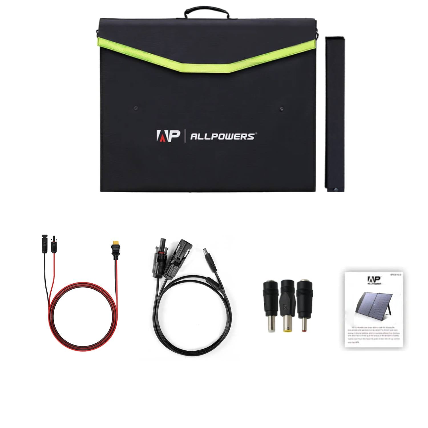 ALLPOWERS 100W portable solar panel kit is made from the US, up to 22% efficiency, 1/3 lighter than the same power of solar silicon. The total power increased by 1/3 in comparison with the same portable solar panel kit size.