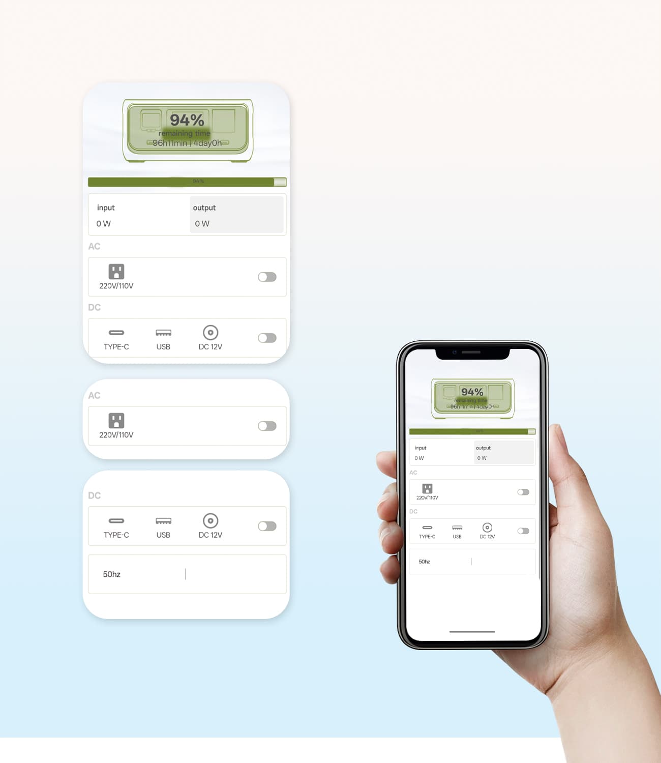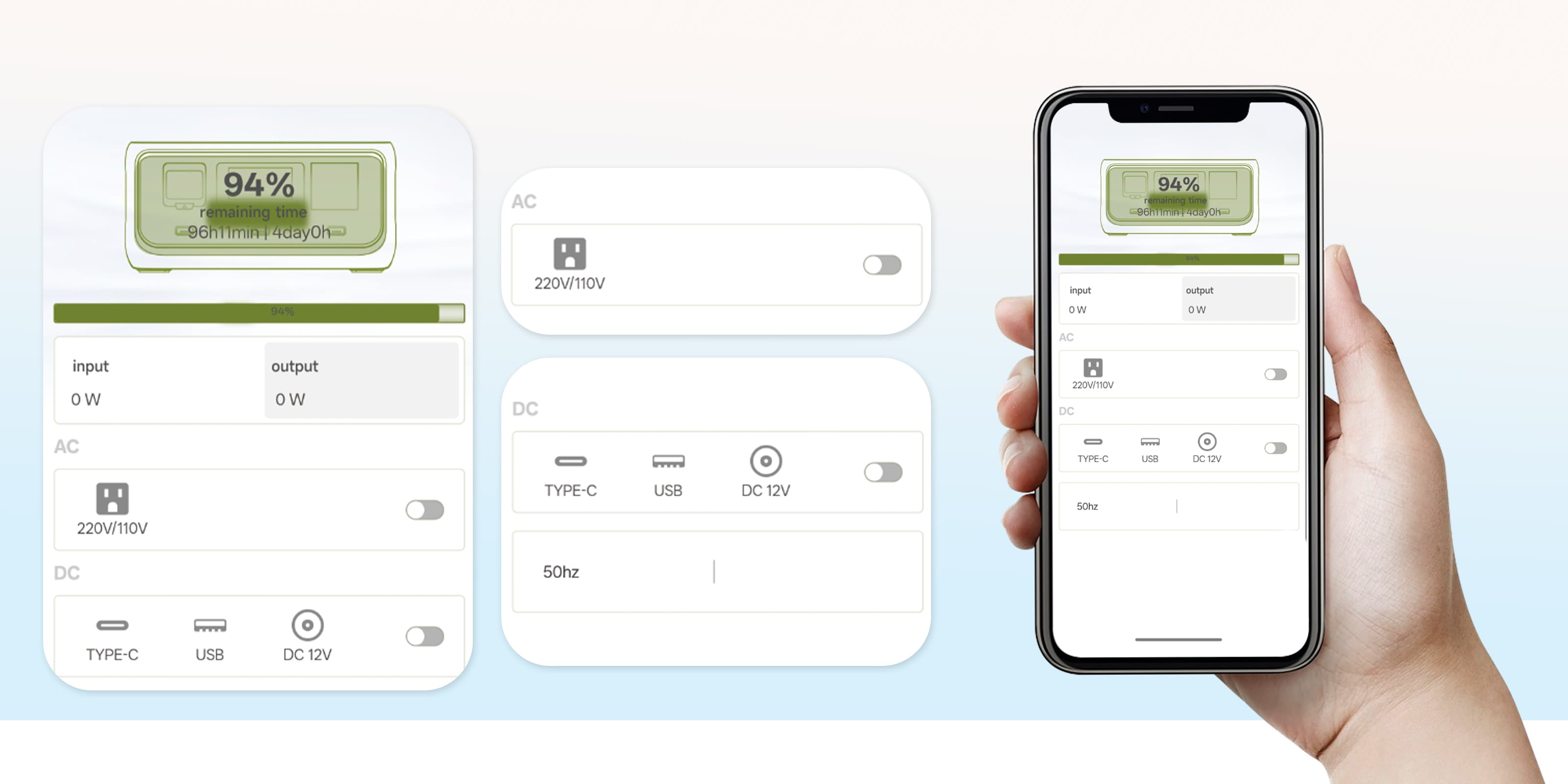Control your power station with the ALLPOWERS App via Wi-Fi and Bluetooth. Monitor usage, adjust settings, and manage devices anytime from your phone.