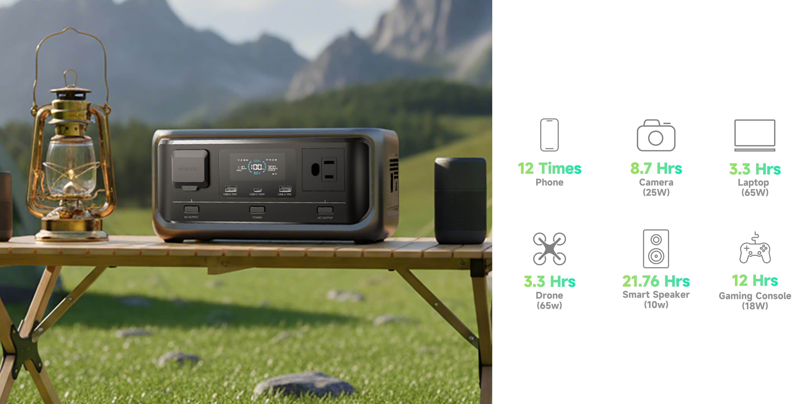 With 300W AC output and 256Wh capacity, the VOLIX P300 powers your devices, small appliances, and more during camping, emergencies, or blackouts. Affordable, portable, and versatile.