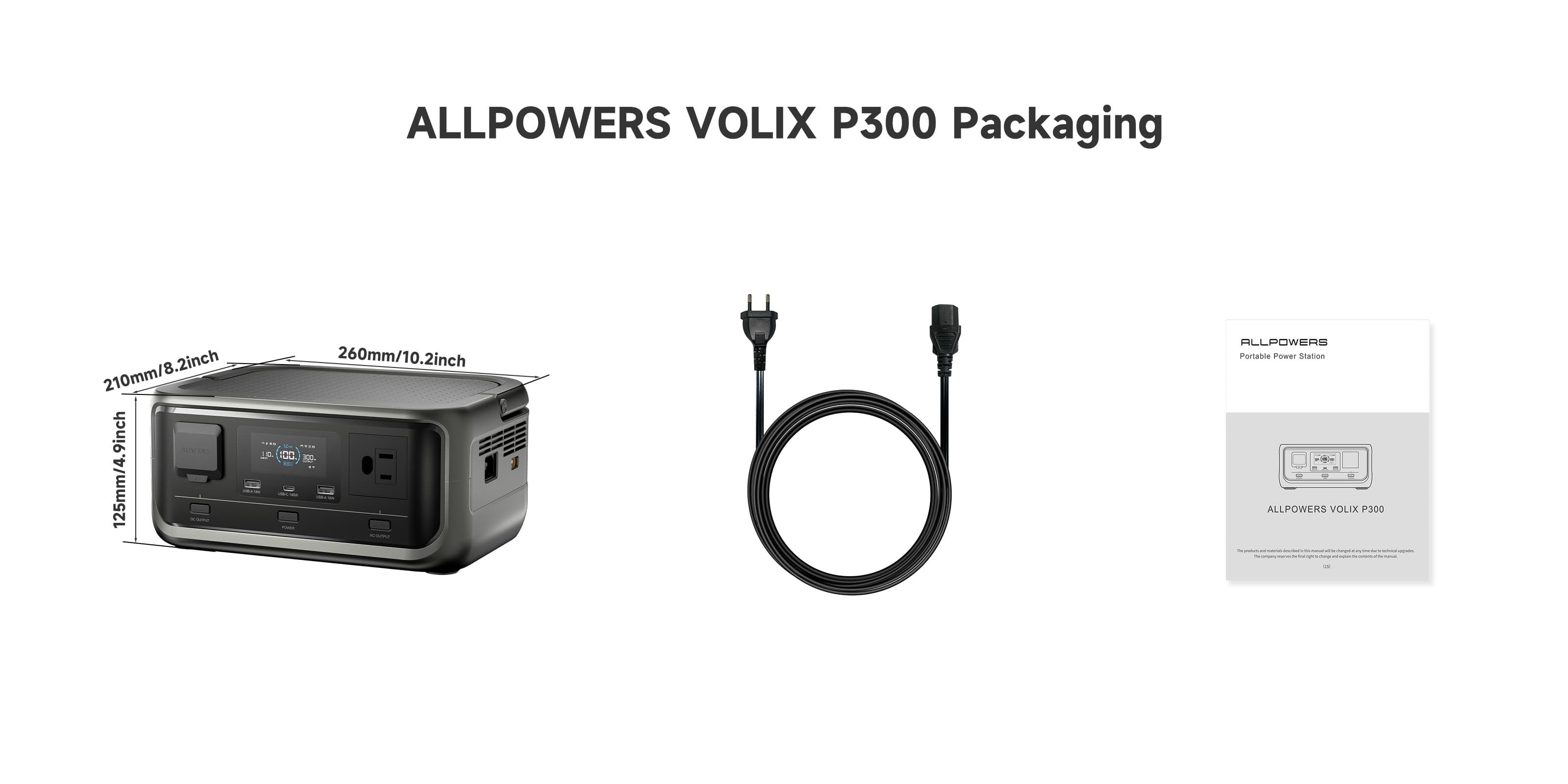 The VOLIX P300 has a 300W AC output (600W peak) and is suitable for powering low-power electronic devices such as laptops, Bluetooth speakers, drones, projectors, cameras, etc.
